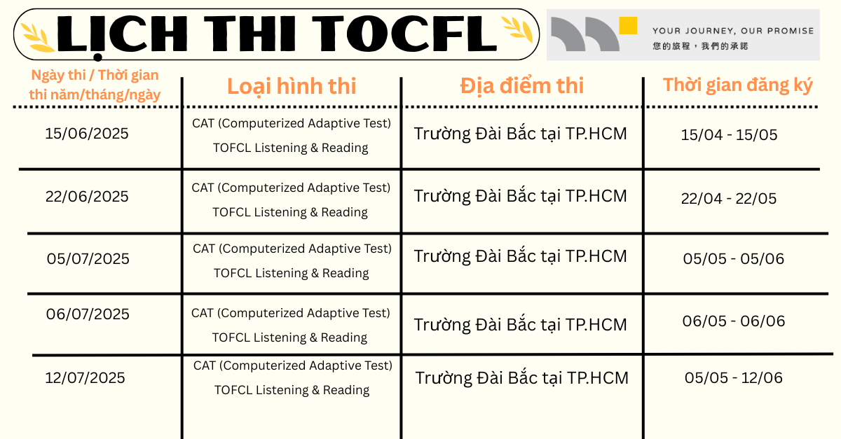 📣 LỊCH THI TOCFL TP.HCM - ĐỢT GIỮA NĂM 2025 📣