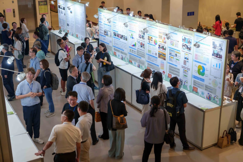 *Những người tham dự hội thảo về AI trong giáo dục đang xem các áp phích giới thiệu kết quả khả quan của dự án vào ngày 30 tháng 7 tại thành phố Đài Trung. (Ảnh do Bộ Giáo dục cung cấp)