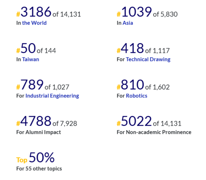 Theo bảng xếp hạng EduRank 2025, Đại học Hổ Vỹ hiện nằm trong top 3.000 trường đại học hàng đầu thế giới, xếp thứ 3.350 toàn cầu và thứ 1.097 tại khu vực châu Á. Tại Đài Loan, NFU được đánh giá cao trong khối ngành kỹ thuật – công nghệ, đặc biệt nổi bật ở các lĩnh vực như Kỹ thuật (xếp hạng 26 trong nước, 1.644 thế giới), Vật lý (thứ 26 Đài Loan, 1.747 thế giới), và Khoa học máy tính (thứ 33 Đài Loan, 1.761 thế giới). Ngoài ra, trường cũng đạt vị trí thứ 37 trong lĩnh vực Hóa học và thứ 42 trong khối ngành Kinh doanh. Những thành tích này thể hiện thế mạnh của NFU trong đào tạo kỹ thuật ứng dụng, nghiên cứu khoa học và hợp tác công nghiệp, khẳng định vị thế của trường trong hệ thống các đại học công nghệ hàng đầu Đài Loan.