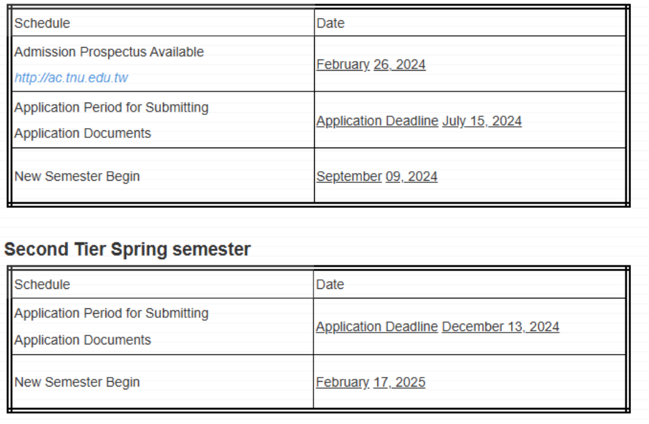 Thời gian nhập học của trường chia làm 2 đợt chính học kì thu Tháng 9 cùng năm và học kì mùa xuân Tháng 2 năm sau
