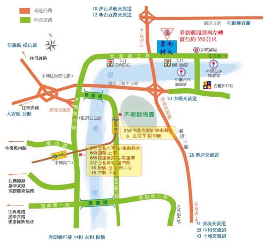 Dưới đây là bản đồ giao thông hướng dẫn đến Trường Đại học Khoa học Công nghệ Đông Nam (Tungnan University) tại Thâm Khanh, Tân Bắc – Đài Loan. Bản đồ thể hiện rõ vị trí của trường, các tuyến đường chính, nút giao thông quan trọng cùng hệ thống xe buýt công cộng thuận tiện kết nối từ trung tâm thành phố Đài Bắc và các khu vực lân cận. Đây là tài liệu hữu ích dành cho sinh viên mới và khách tham quan muốn di chuyển dễ dàng đến khuôn viên trường.