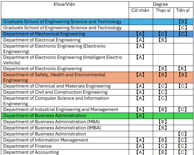 Một số khoa có yêu cầu riêng (cần kiểm tra thêm)