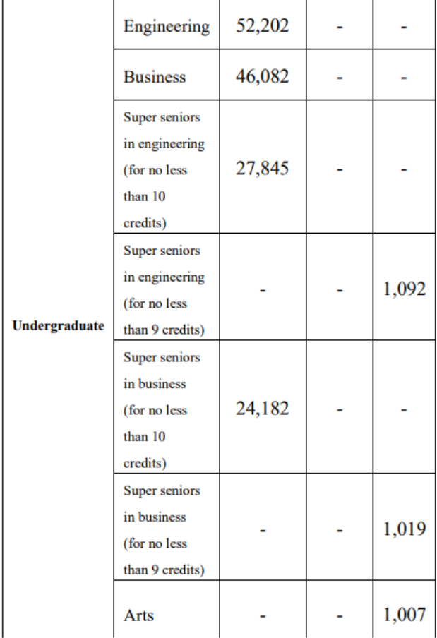 Các khoản phí trong bảng tính theo học kỳ (6 tháng/học kỳ), 1 năm học gồm 2 học kỳ."