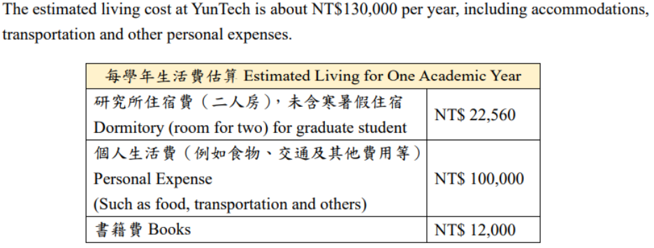 + Học bổng cho sinh viên quốc tế xuất sắc của YunTech