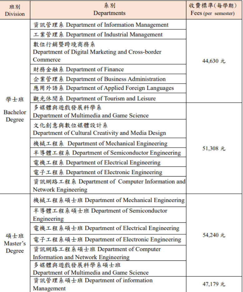 Phí bảo hiểm an toàn cho sinh viên là 440 Đài tệ/học kỳ.