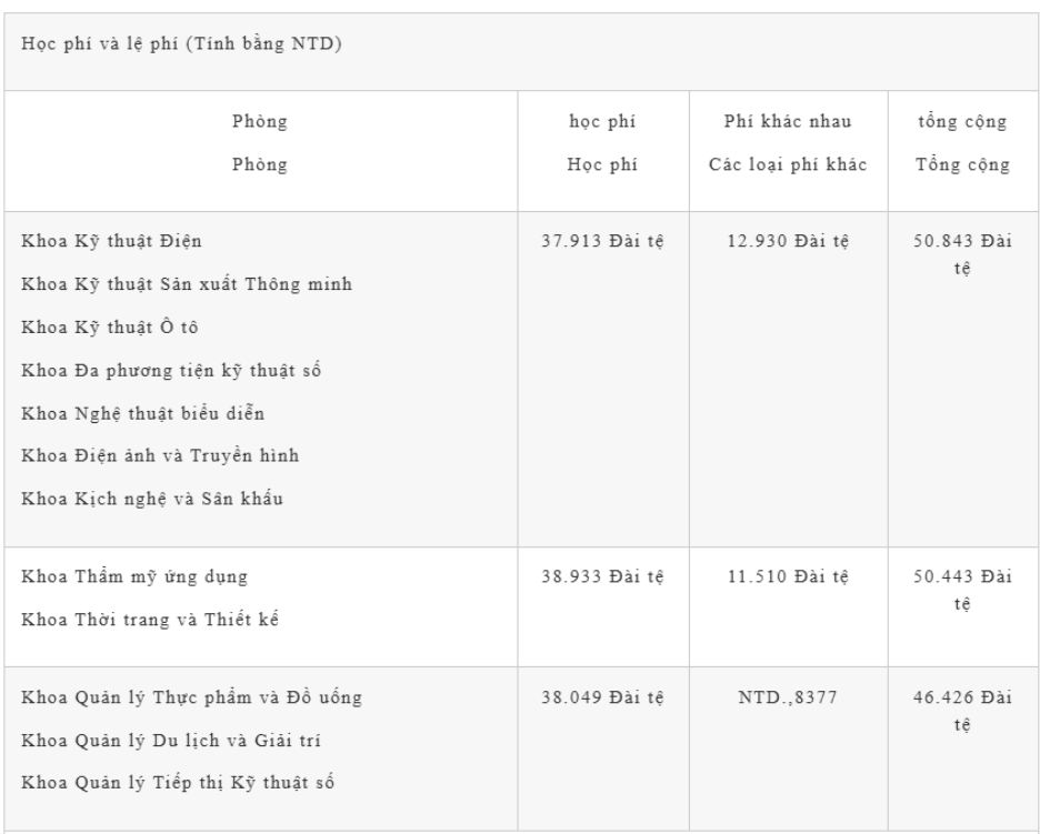 Các khoản phí trong bảng tính theo học kỳ (6 tháng/học kỳ), 1 năm học gồm 2 học kỳ."