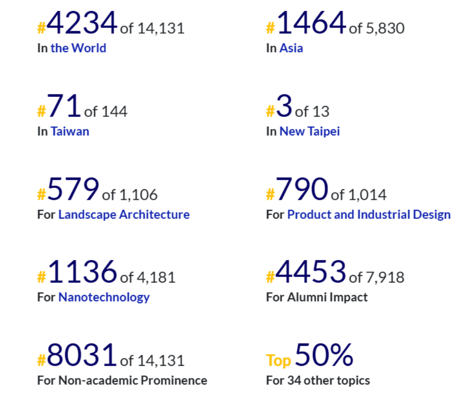 - "First Class Scholarship": lên tới NT$1,000,000.