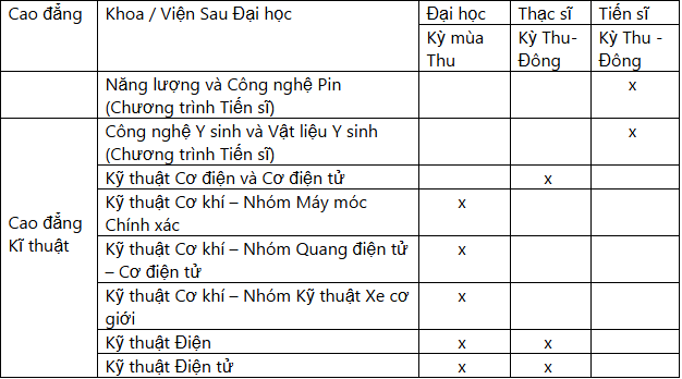 ** Kỳ mùa xuân (Spring Semester)**: bắt đầu từ tháng 2.