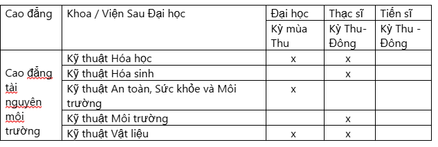 Một số khoa có yêu cầu riêng (cần kiểm tra thêm)