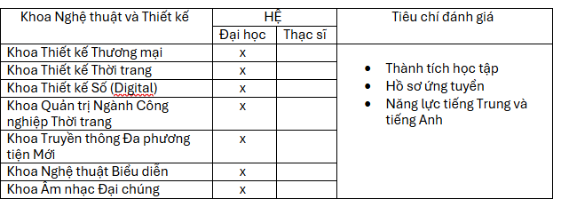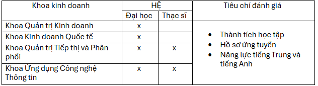 + Học bổng của trường dành cho tân sinh viên