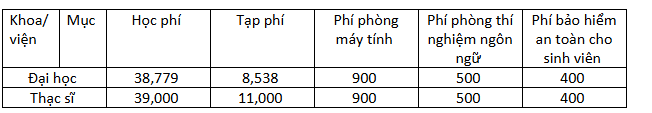 Các khoản phí trong bảng tính theo học kỳ (6 tháng/học kỳ), 1 năm học gồm 2 học kỳ."