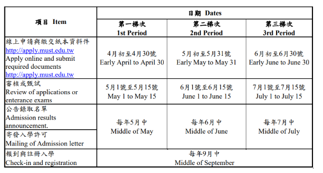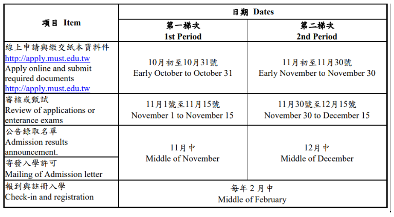 Biểu phí ( bao gồm: Bảo hiểm 650 Đài tệ + Phí Internet 300 Đài tệ + Phí sử dụng máy tính 750 Đài tệ + Phí sử dụng ngôn ngữ 300 Đài tệ + Phí hồ bơi 800 Đài tệ): NT$2,800 / học kỳ